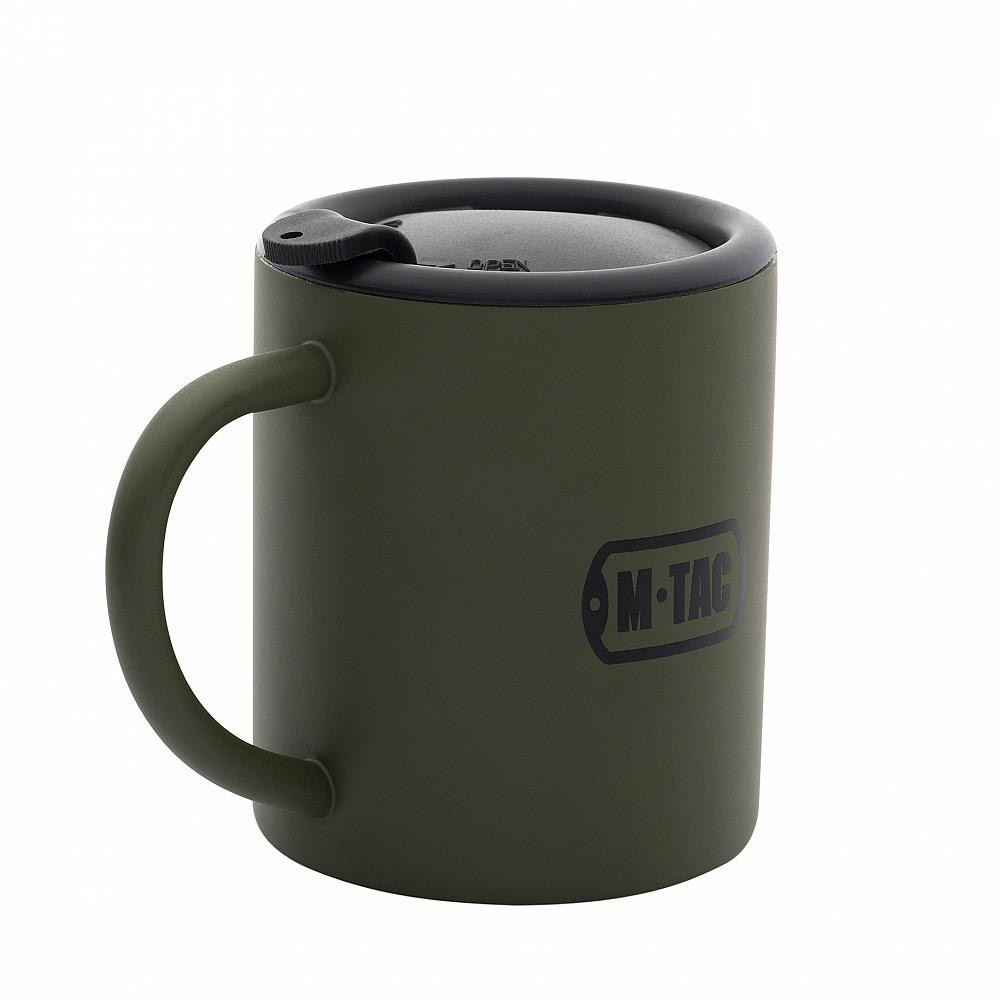 Ein Thermobecher aus Edelstahl der ukrainischen Firma M-Tac. Es ist mit einem Deckel ausgestattet, dank dem Sie beim Ausruhen im Wald oder auf einem Bergweg länger ein heißes Getränk genießen können. Doppelschichtige Wände halten die Wärme gut, sie schützen auch die Oberfläche der Tasse vor Überhitzung.