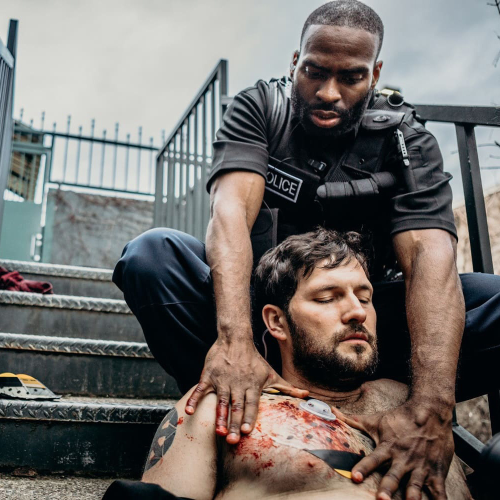 SAM® Chest Seal Valved 2.0 belüfteter Verband von SAM Medical zum Schutz von offenen Brustwunden während des Transports einer verletzten Person ins Krankenhaus. Es schützt die Wunde vor äußeren Einflüssen und verhindert das Auftreten eines potenziell lebensbedrohlichen Spannungspneumothorax. Der Verband hat ein Ventil, das einen Luftstrom aus der Brust in eine Richtung ermöglicht.