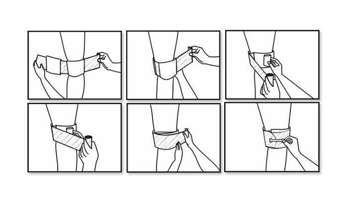 - Erfordert keine Unterstützung des Verbandes, da eine Bandage die sichere Befestigung des Verbandes an der Wunde ermöglicht