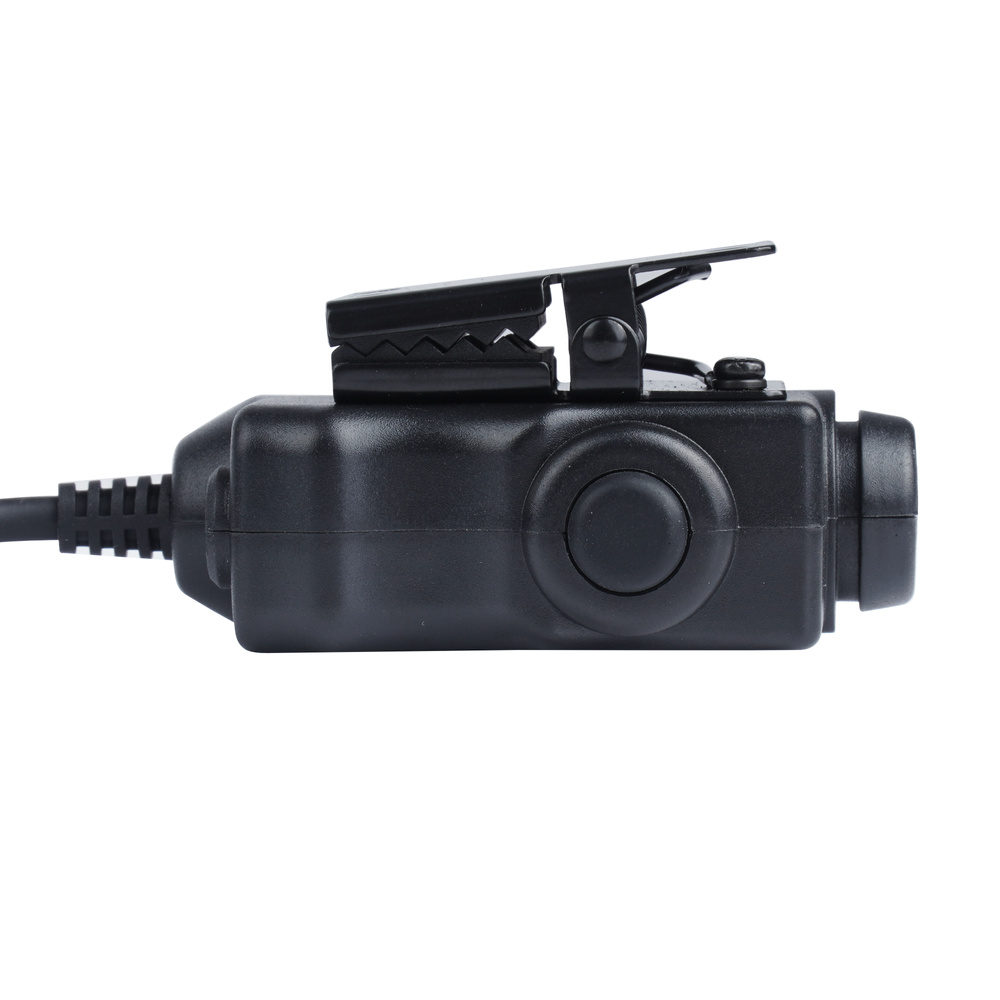 The M51-MIL Push-To-Talk module from Earmor that allows communication only when a button is pressed. The module has a cable of more than half a meter, which, combined with a resilient clip, makes it easy to place in a place convenient for the user. A NATO Military Standard 7.0 plug with 6-pins allows the module to be plugged into a wide range of equipment like walkie-talkies and radios. The module has a large central button with a rubberized surface that can be easily felt under the finger.