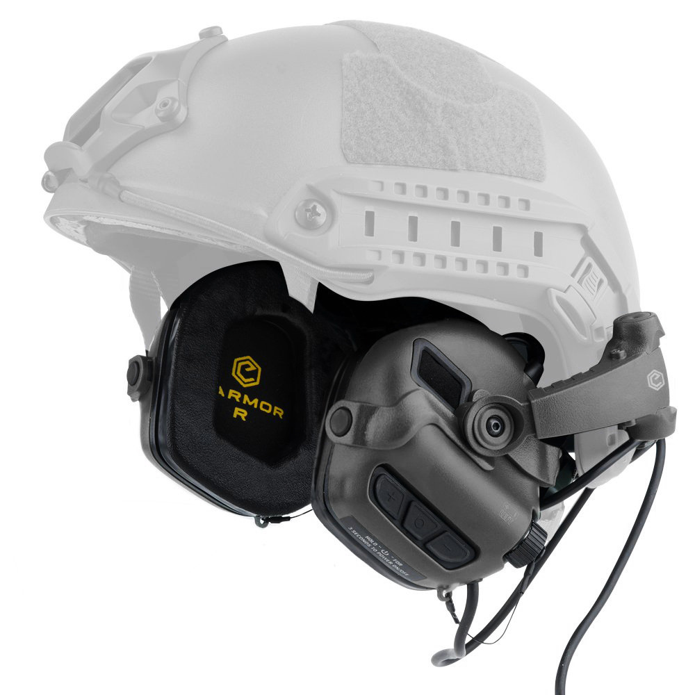 Aktywne ochronniki słuchu M31X Mark 3 marki Earmor do hełmów. Chronią przed niebezpiecznym hałasem, jednocześnie pozwalając słyszeć dźwięki otoczenia. Dźwięki te są wykrywane przez dwa mikrofony kierunkowe zamontowane na zewnątrz każdej czaszy. Później odtwarzane są przez głośniki znajdujące się wewnątrz nauszników. Spełniają wymagania klasy szczelności IP67, czyli są odporne na trudne warunki pogodowe.