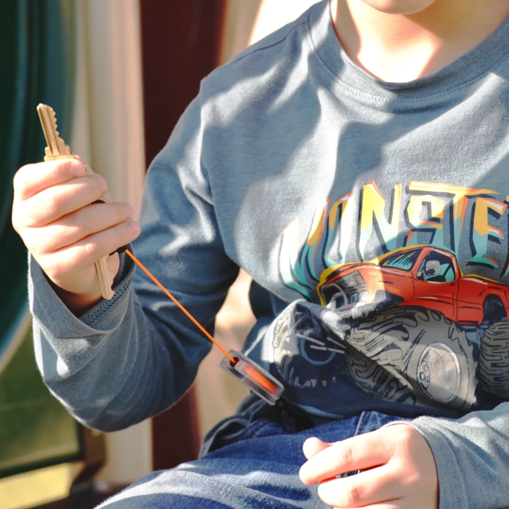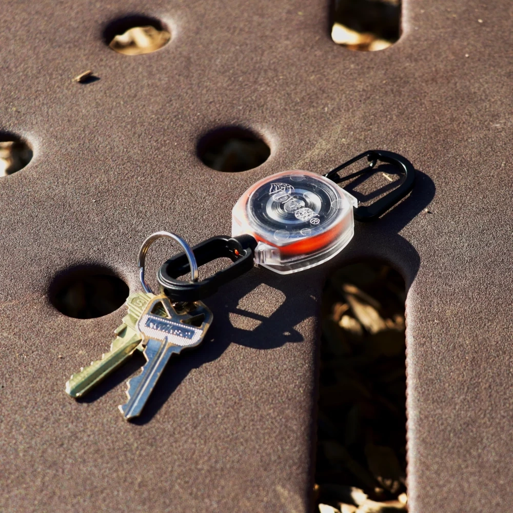 Kompaktowy retraktor w nowoczesnym wydaniu. Dzięki zastosowaniu przezroczystej obudowy i jaskrawej linki tworzy łatwe w identyfikacji urządzenie na którym można przenosić na przykład klucze. Sam retraktor można bez problemu podpiąć do popularnych w plecakach D-Ringach. Wpięcie odbywa się za pomocą aluminiowego karabińczyka, a przedmioty można trzymać na polimerowym. Pewnie przyciąga z powrotem odciągnięte przedmioty.